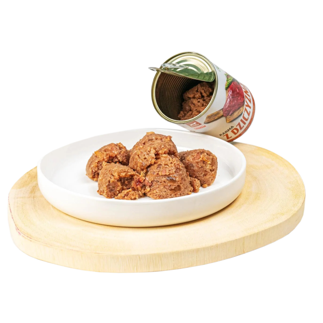 Вологий консервований корм з олениною – це повнораціонний корм, який задовольнить усі основні харчові потреби вашого улюбленця. Унікальний смак оленини спокусить кожну собаку.