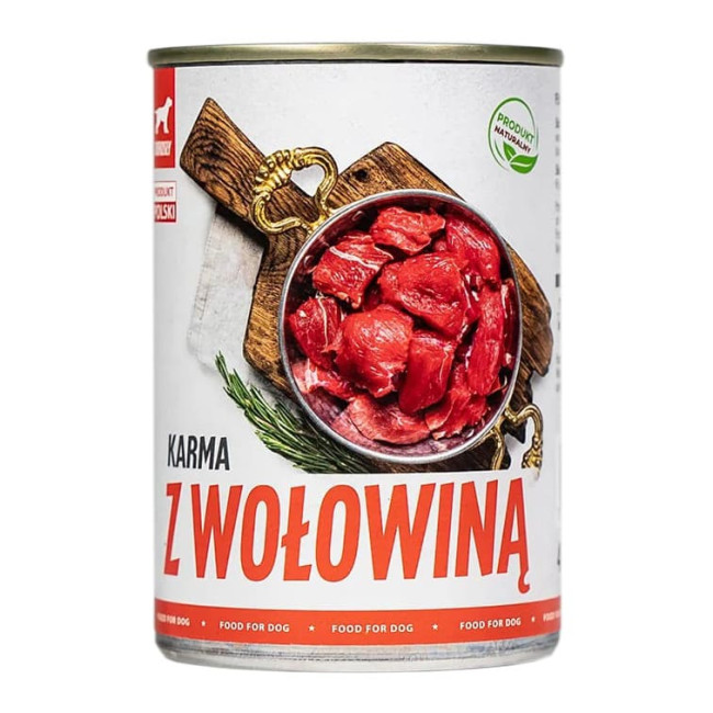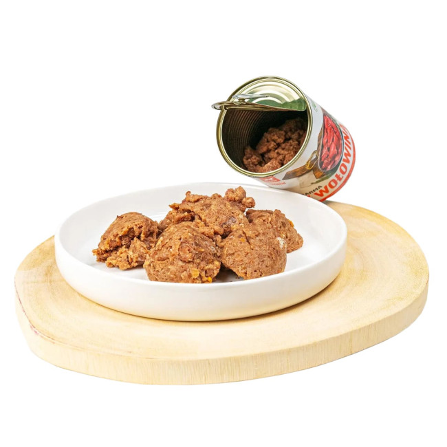 Вологий консервований корм з яловичиною - повнораціонний корм, що підходить для щоденного годування.